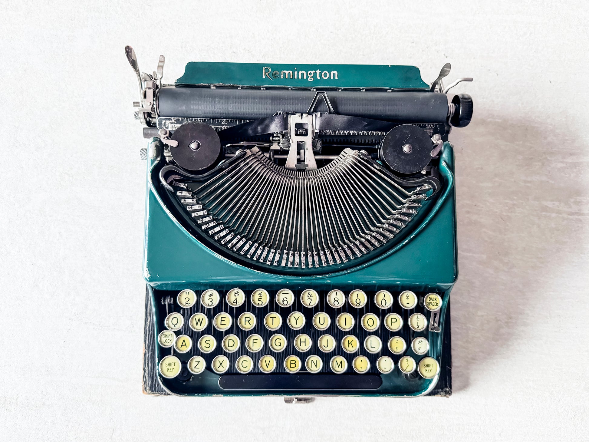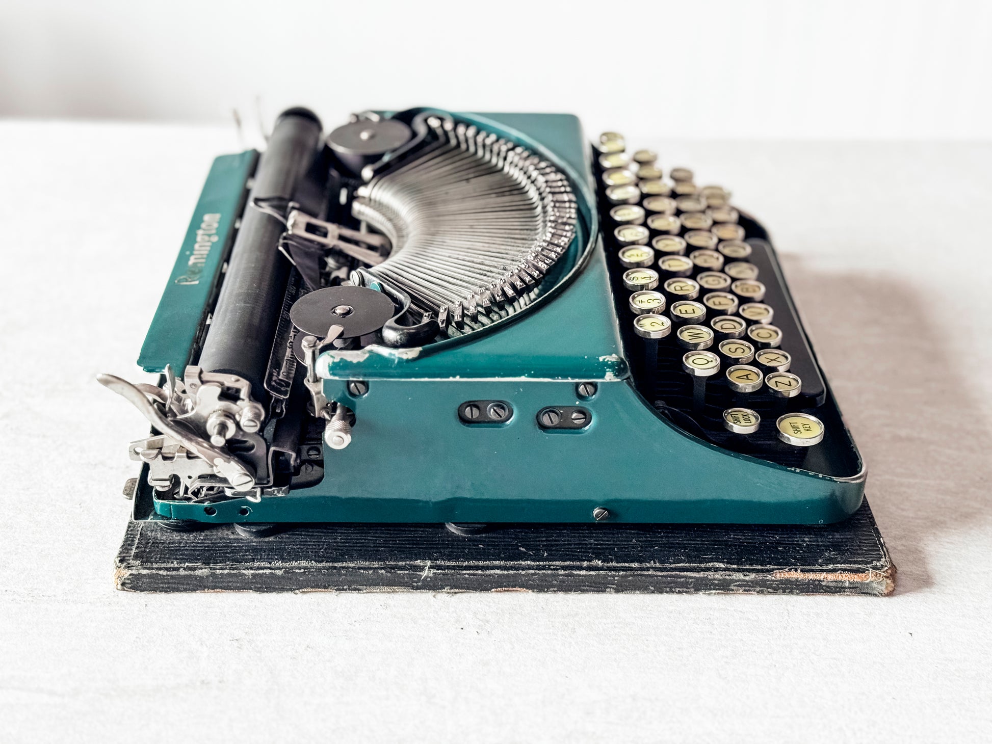 These old Remingtons are so interesting and fun to use! If you're looking for a UNIQUE typewriter to add to your collection that is still a terrific writer, this is one for you. Typebars fold down for storage. Black-only ribbon; please note that it uses specialty spools (NOT universal ribbon). A new ribbon has been wound onto the spools for you.