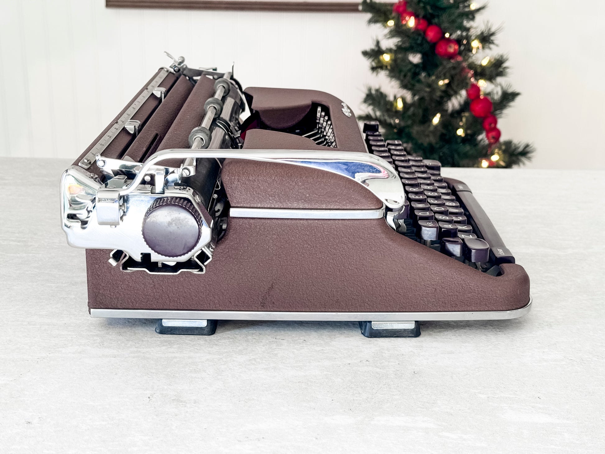 A handsome typewriter suitable for active use. The extended carriage gives you more paper size options. The carriage has a very smooth motion. Includes metal spools.