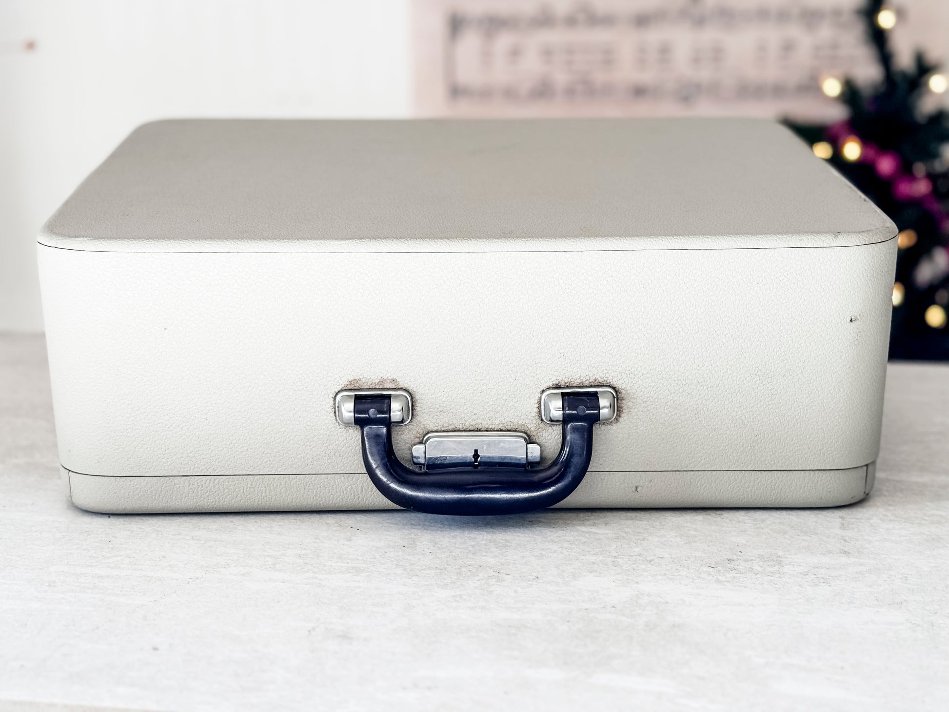 EXTERIOR + CASE: No noticeable wear or issues on this typewriter—it looks amazing. The case is solid and in great condition. Also includes the original typewriter cover, cleaning kit, and user manual.