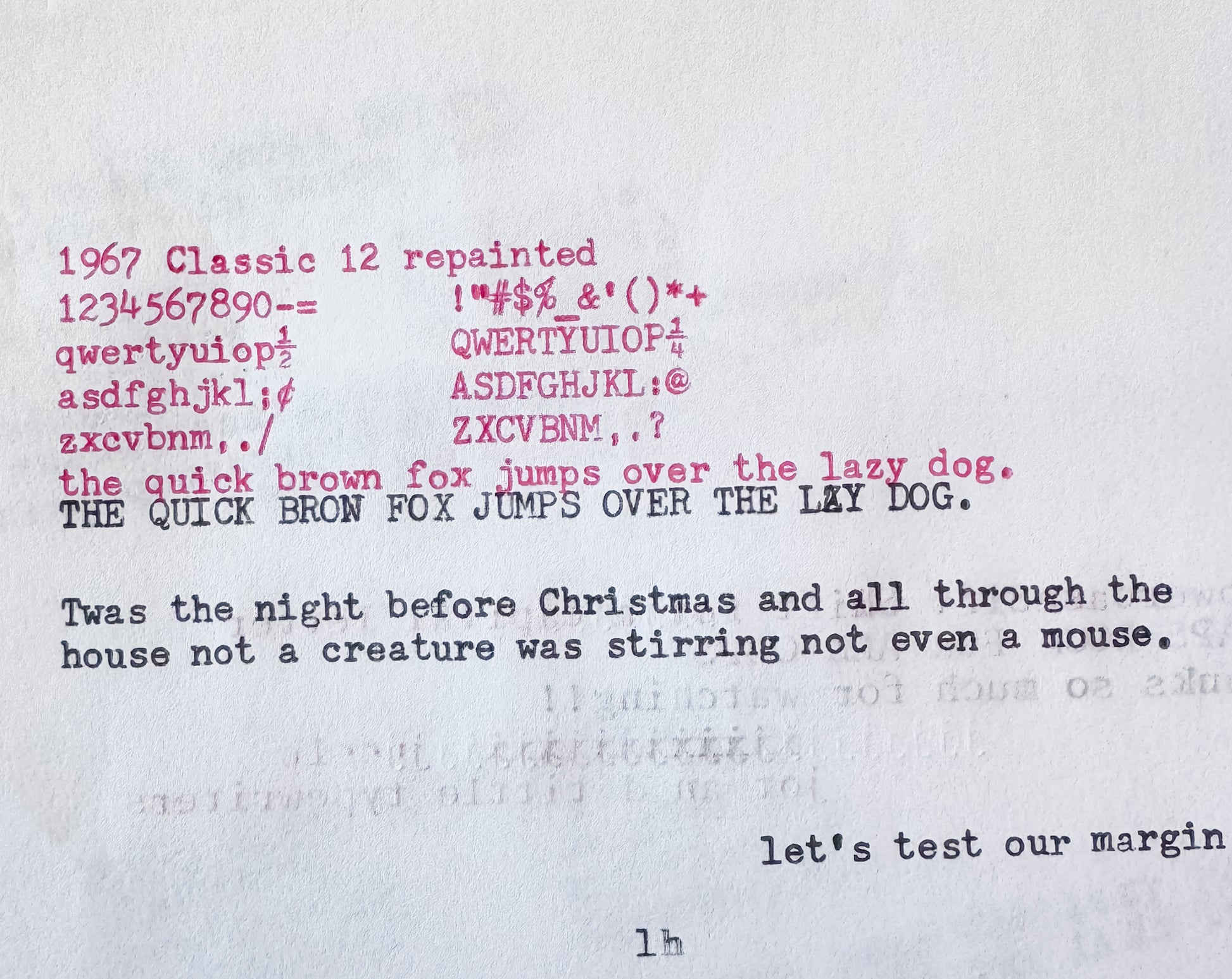 You really can't go wrong with a Smith Corona Classic. This one is repainted in a bright red. Types very well. An excellent family typewriter or an affordable option for active writers.