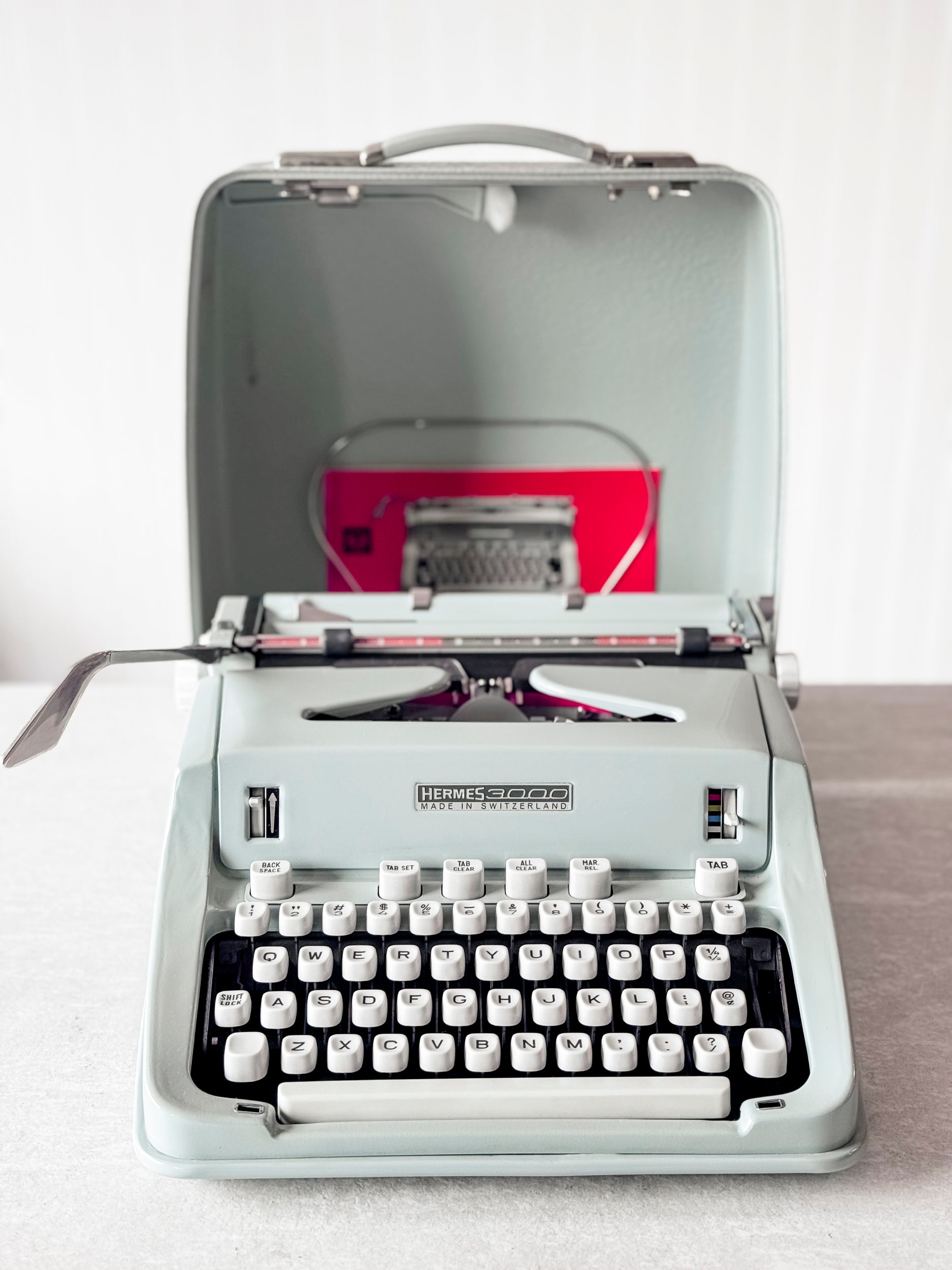 A beautiful Hermes with a hard metal shell. The type style on this particular model is a tiny 13 cpi! It is clear, tight, and readable. It performs like new and is an amazing machine!